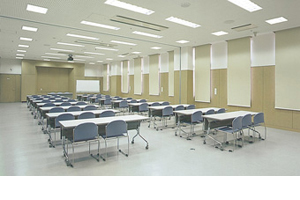 中人数用の学習室です。仕切りを外すことにより、大人数が収容できり学習室としてもご利用いただけます。 会議室併用で90人程度の講習会が行えます。会議室個別ではそれぞれ第1学習室35名程度、第2学習室30名程度の会議が可能。